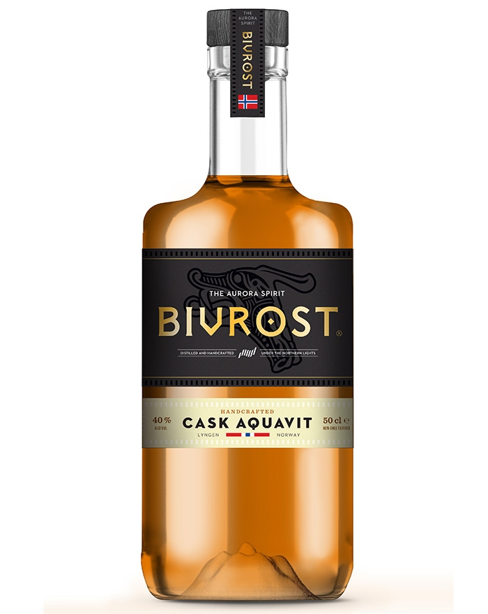 Lavet med en traditionel kartoffelbaseret spiritus og klassiske urter og krydderier, der derefter blandes med smeltevand fra gletsjere i Lyngen Alperne, er Bivrost Cask Akvavit en fusion af moderne destilleringsteknologi og tradition. Denne håndlavede akvavit lagres i nøje udvalgte sherryfade og får lov til at modne i deres omfattende underjordiske lagringskamre, som tidligere var en del af et netværk af tunneler i en NATO-base fra den kolde krig.