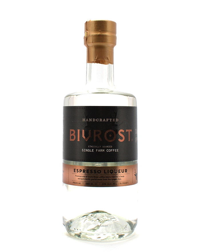Bivrost Espresso Likør er en delikat, klar kaffelikør, lavet med ristede kaffebønner fra Senja Roasters.