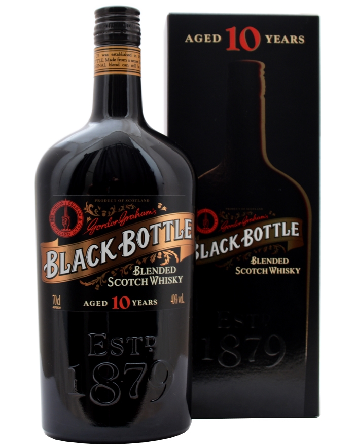 Black Bottle 10 Years Old er en limited edition udgave af den klassiske Black Bottle, nu med ekstra dybde og kompleksitet efter mindst 10 års lagring. Denne blended Scotch Whisky forener frugtig grain whisky med både røgede og ikke-røgede single malts – og har islay whisky som hjertet i blendet, hvilket giver en bemærkelsesværdig karakter.