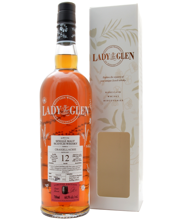 Lady of the Glen og tilbyder en sjælden oplevelse for samlere og connaisseurs. Destilleret i 2013 og tappet i 2025 – efter 12 års modning – leveres den i sin reneste form: Cask Strength på hele 60,5%.