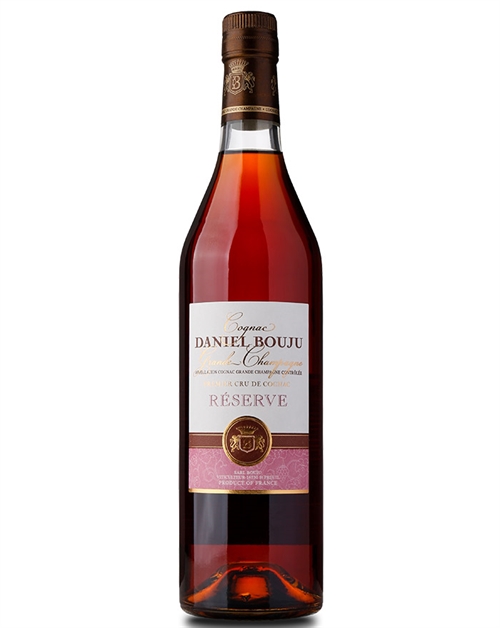 Daniel Bouju Reserve Cognac fra Frankrig på 40%. Smagsnoter: Kompleks, kraftfuld karakter med delikate og meget elegante nuancer af primært vanille og krydderier. Cognacen har lagret på nye Limousin-fade. Daniel Bouju et er en lille familievirksomhed, grundlagt i 1805 og beliggende i Saint-Preuil. Huset laver cognac i Grande Champagne, Cognacområdets absolutte "Hjerte", og råder over 25 ha vinmarker.