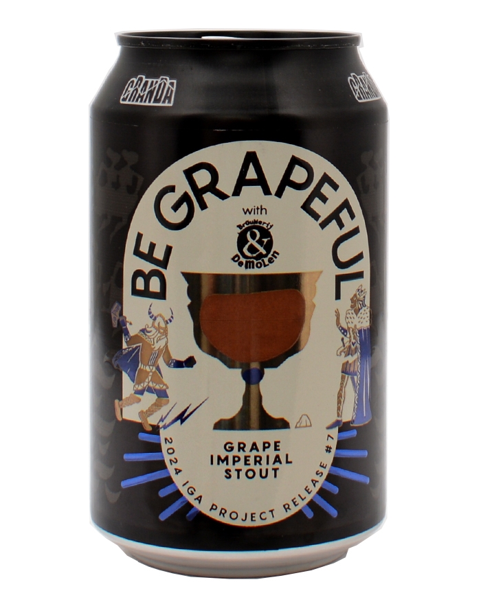 Granda Be Grapeful Limited Edition er en unik specialøl skabt i samarbejde mellem Birrificio della Granda og De Molen. Med en alkoholprocent på 9,5% er denne Italian Grape Ale karakteriseret ved en kompleks smagsprofil, der kombinerer elementer fra stout eller porter med den frugtige karakter af druer. Øllen byder på rige aromaer af chokolade, kaffe og rosiner, kombineret med subtile noter af citrus og karamel. Disse smagsnuancer får ekstra dybde fra tilsætningen af druemost, hvilket tilføjer en let vinøs karakter, som gør øllen til et spændende valg for ølentusiaster