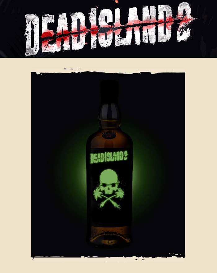 Spillet Dead Island 2 har fået en helt unik tilføjelse, nemlig dens helt egen whiskey - destilleriet Dunville i Irland har skabt en unik flaske, som er selvlysende i mørket, perfekt til nyde mens man spiller Playstation. Whiskyen er et mix af potstill destilleret råsprit, Malt whiskey og grain whiskey, som har lagret på brugte bourbonfade, med lækre noter af vanilje, frugt, småkager og dejlig frugtig. Aftappet ved 40%