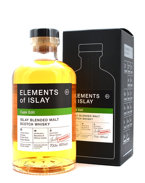Forside » Whisky » Special Whisky » Elements of Islay Elements of Islay Cask Edit Islay Blended Malt Scotch Whisky 70 cl 46% Er du nysgerrig på mere? Vi elsker god spiritus – og vi deler gerne ud af vores viden. Læs vores blogs, lyt til podcasten eller bliv klogere på smag, fadlagring og traditioner. 👉 Gå til bloggen og bliv inspireret Pris ved køb af 1 Stk,449,00 DKK Antal Tilføj til din ønskeliste Optjen bonuskroner: - Læs mere Status: På lager Varenr: 059763-615-530 Har du prøvet dette produkt? Giv en rating mellem 1-5 stjerner Bedømmelse for Elements of Islay Cask Edit Islay Blended Malt Scotch Whisky 70 cl 46%Produktet er endnu ikke bedømt ← Start her Køb sammen med denne vare Glencairn Whiskyglas i hvid kasse - 6 stk. DKK279,00 Info Beskrivelse Fragt og retur Kontakt Anmeldelser Elements of Islay Cask Edit Islay Blended Malt Scotch Whisky 70 cl 46% Destilleri: Elixir Distillers Navn: Elements of Islay Cask Edit Alder: NA Type: Islay Blended Malt Scotch Whisky Fad nummer/type: Bourbon & Sherry Casks Alc. styrke: 46 % Un-chillfiltered Natural Colour 70 cl. Postnord Fri fragt ved køb over 899,- kr. 0-5 kilo = fra 39,- kr. 5-10 kilo = 99,- kr. 10-20 kilo = 149,- kr.Læs om vores retur her 0 anmeldelser Produktet er endnu ikke anmeldt. Klik her for at skrive en anmeldelse. Varenr: 059763-615-530 Er du nysgerrig på mere? Vi elsker god spiritus – og vi deler gerne ud af vores viden. Læs vores blogs, lyt til podcasten eller bliv klogere på smag, fadlagring og traditioner. 👉 Gå til bloggen og bliv inspireret