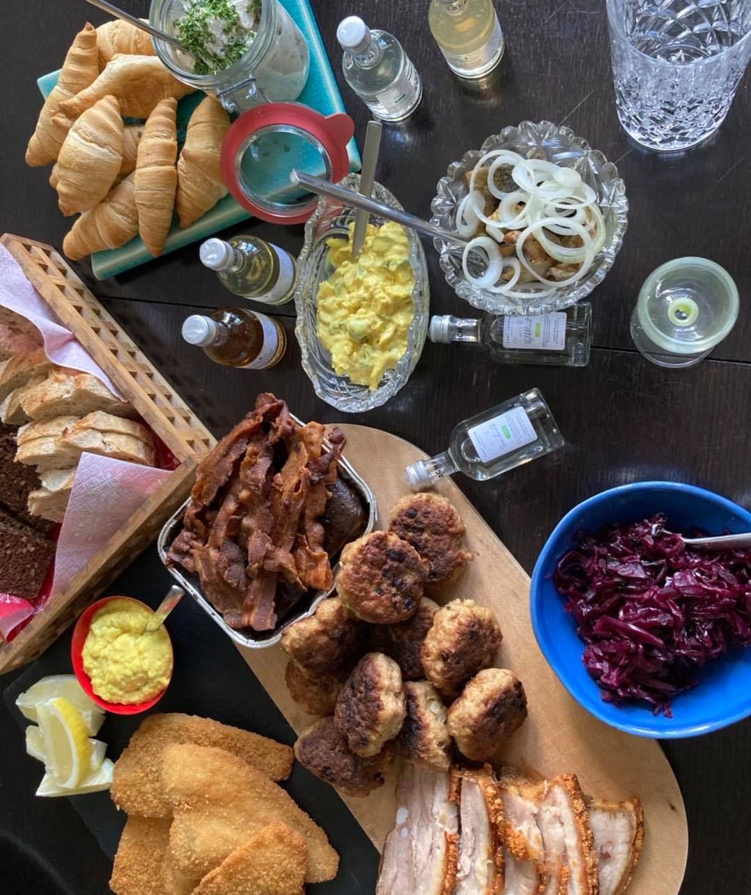 Så skal vi til snapsen, som man siger. Jeg smager på tre snapse. Brændenældesnaps 36%, Hyldeblomstsnaps 36% og Valnødsnaps 36%.