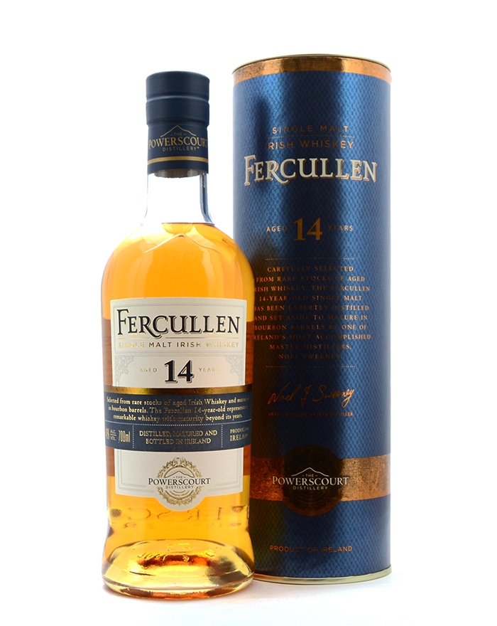 Efter 14 års lagring på 1st fill Bourbon Barrels, er denne skønne Fercullen 14 år Single Malt Irish Whiskey skabt af Powerscourt, som samme med Noel Sweeney nu har udviklet den prisvindende serie ”Fercullen”. Hver af disse whiskyer er blevet til ved anvendelse af whisky, som Noel og hans team tidligere har produceret på Cooley destilleriet.