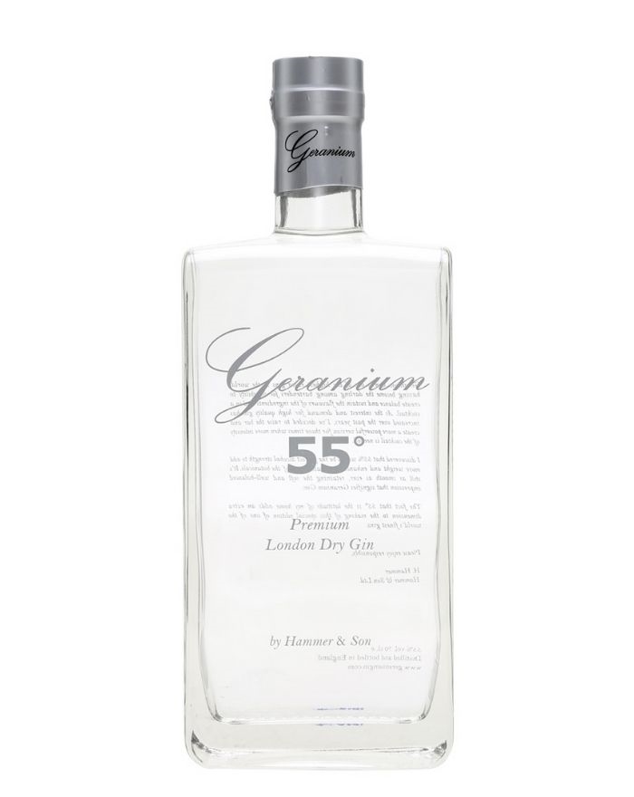 Geranium 55 Premium London Dry Gin: Frugtig I duften. Fed konsistens og den høje alkohol velintegreret. Klassisk enebærpræg. Lang urtet eftersmag. Skabt af Henrik Hammer fra Danmark, men produceret i England.