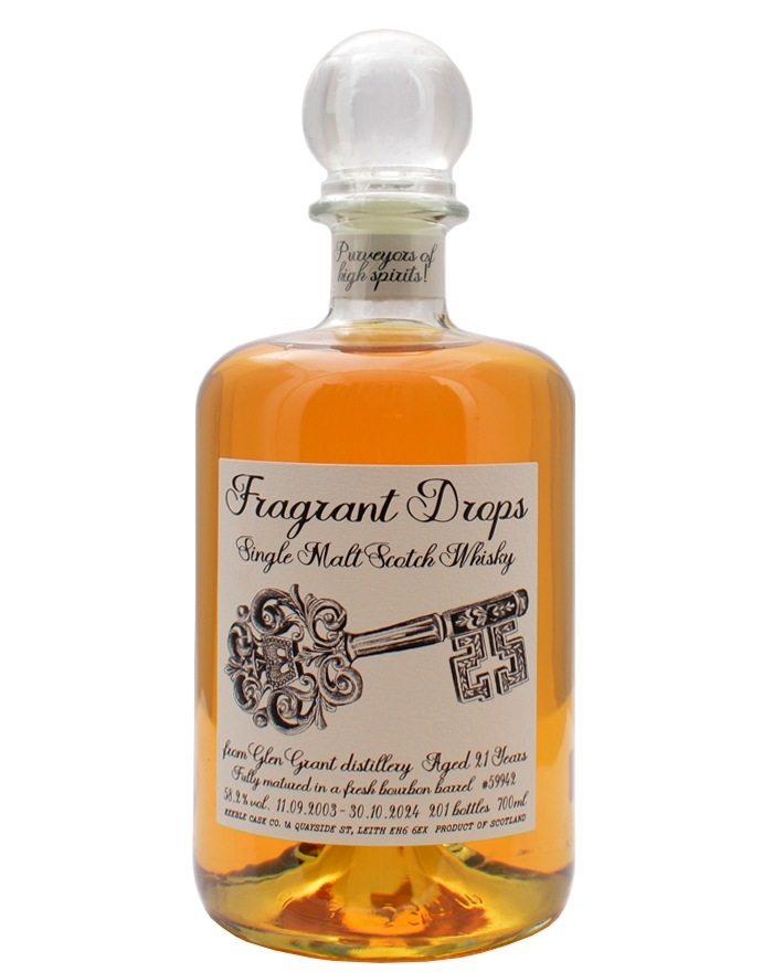 Glen Grant 21 år Fragrant Drops Single Malt Scotch Whisky er en eksklusiv og udsøgt aftapning fra den uafhængige aftapper Fragrant Drops. Denne sjældne single malt whisky er destilleret på det berømte Glen Grant-destilleri og har modnet i hele 21 år, hvilket giver den en dyb og kompleks smagsprofil. Med en imponerende alkoholprocent på 58,2% præsenteres whiskyen i sin naturlige fadstyrke, hvilket bevarer de fulde aromaer og intensiteten fra lagringen. Den er hverken kølefiltreret eller farvetilsat, hvilket sikrer en autentisk oplevelse.