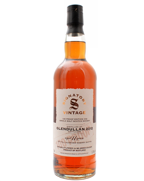 Glendullan 11 år Signatory 100 Proof Edition #32 er en kraftfuld og kompleks whisky fra det velkendte Glendullan-destilleri i Speyside. Denne udgave, aftappet af Signatory Vintage, har en alkoholprocent på 57,1%, hvilket giver den en intens og fyldig smagsprofil. Efter at have modnet i 11 år, udvikler whiskyen en balanceret karakter med noter af honning, citrus, krydderier og en let sødme, der gør den til en spændende oplevelse for både nybegyndere og erfarne whiskyelskere. Den højere alkoholstyrke gør den ideel til at blive nydt både ren og med en smule vand, alt efter præference. Glendullan 11 år Signatory 100 Proof Edition #32 er en fremragende whisky, der kombinerer intensitet og elegance, perfekt for dem, der søger en ekstraordinær smagsoplevelse.