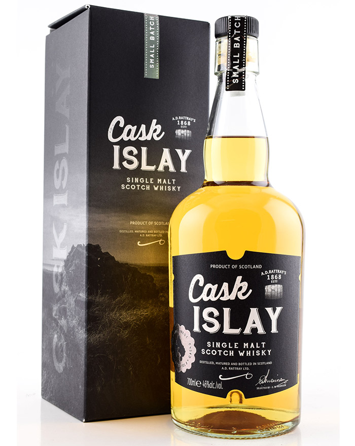 Cask Islay er en uafhængig aftapning fra Dewar Rattray. Ligesom forgængeren er den flasket på 46% alkohol. Der er forskellige meninger om hvor denne whisky kommer fra, nogle mener at det er Laphroaig, andre hævder Caol Ila og der er såmænd også folk der siger Lagavulin. Den er fadlagret på en blanding af ex-bourbon fade og ex-sherry fade. Jeg fandt ikke sherry fadlagringen udpræget tydelig, men smagsoplevelsen bragte mine tanker hen på et helt bestemt destilleri. Måske kan du gætte hvilket?