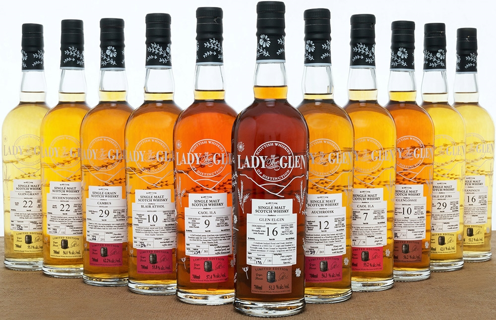 Indlæg af Mads Thorup og Kristian Henriksen Lady of the Glen er en uafhængig aftapper, som køber sjældne og specielt udvalgte single cask tønder fra uafhængige destillerier i det meste af Skotland. De prøver at gøre en dyd ud af, at hylde den lange og gamle tradition for uafhængig aftapning af whisky i Skotland. Navnet “Lady of the Glen” stammer fra ideen om, at mærket skal legemliggøre Skotlands essens og er en hyldes til det grønne dame-spøgelse, der eftersigne skulle strejfe omkring Stirling Castle. Logoet, der pryder flaskerne i dag, prøver at fange den lilla farve fra den skotske vildblomst. Lady of the Glen håndaftapper alle deres whiskyer og tapper ved fadstyrke uden whiskyen koldfiltreres, hvilket gør, at du får den helt rå whisky, som den har udviklet sig i tønderne. Dette betyder også, at de fleste whiskyer herfra ligger på en alkoholprocent på over 50%. På denne måde bibeholdes alt den originale smag og du får en whisky, som er helt unik hver gang. Lige så unik som det enkelte fad er, lige så speciel er hver enkelt flaske, der tappes, da hver flaske har et håndskrevet flaskenummer. Hermed er hver flaske lige så speciel og unik som den whisky, den indeholder.