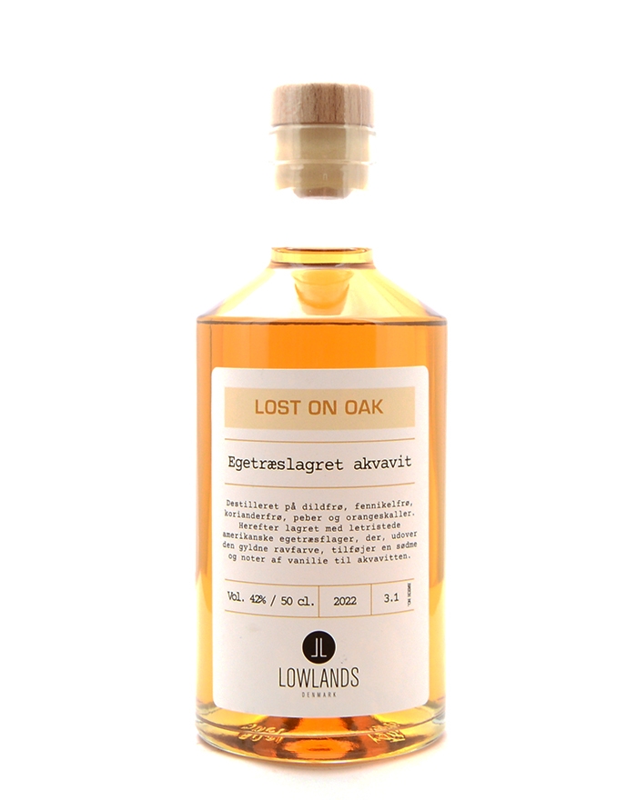 Lowlands Lost on Oak er en dansk akvavit, som er destilleret på dildfrø, fennikelfrø, korianderfrø, peber og orangeskaller. Herefter lagret på amerikanske egetræsfade, der tilføjer en skøn gylden farve samt sødmefulde noter af vanilje. Den er tappet i 50 cl flasker med en alkoholprocent på 42.