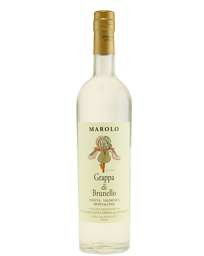 Marolo Grappa Di Brunello Valdicava. Denne grappa fra Marolo er lavet på druekvaset fra Sangiovese druer, som dyrkes i Montalcino. Den har lagret i ståltanke fremfor egetræsfade, for at bevare den fine florale aroma. Den er tappet ved 44%, og har den fineste klare farve. I smagen finder man lyse hindbær og tørrede rosenblade.