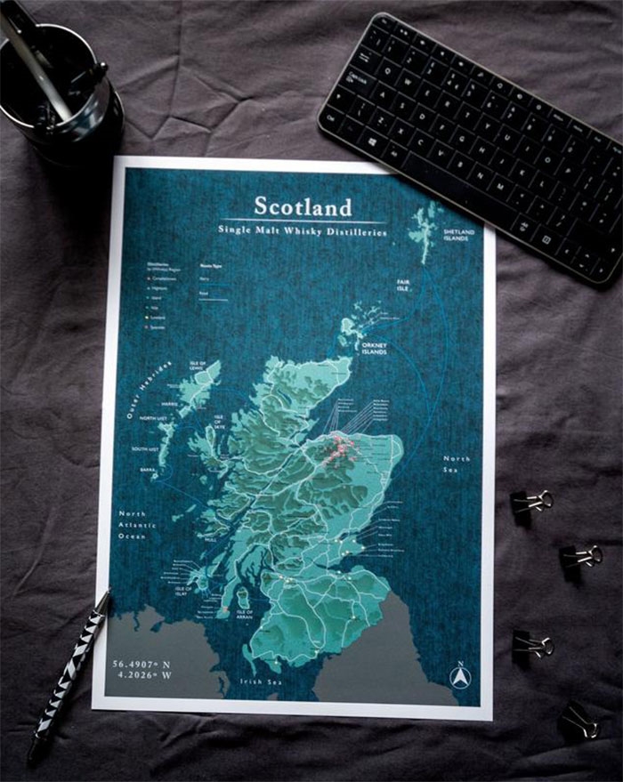 Matte Scottish Distillery Map 42x59,4 cm Plakat A2
