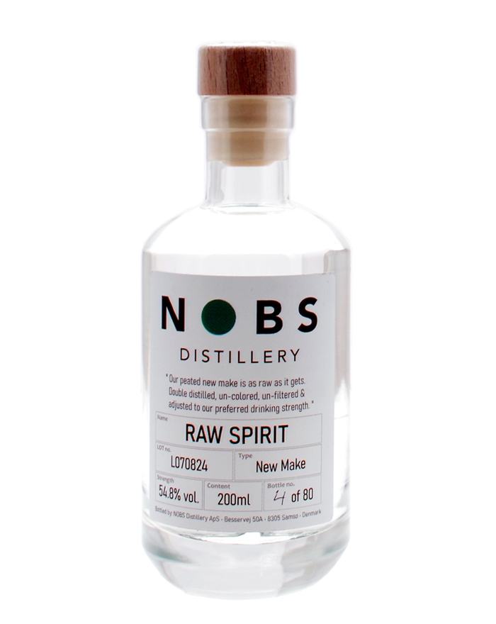 Nobs Destilleriets Raw Spirit er så uforfalsket som det bliver. Denne peated new make er dobbelt destilleret, un-colored, un-filtered og justeret til deres foretrukne drikkestyrke. Det er deres allerførste aftapning af den whisky, der skal komme, og det er en meget begrænset udgivelse på kun 80 flasker i alt.