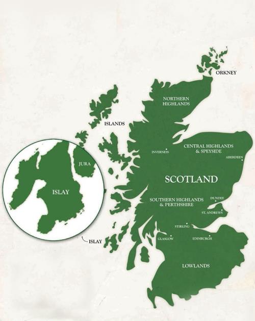Islay regionen producerer de whiskyer som får håret på brystet til at gro, og skægget ligeså. Det er her de mest kraftigt røgede whiskyer har arnested, og er dermed type whisky som deler vandene mellem spiritus entusiaster mest. Det er primært ex-bourbon der bliver anvendt, og whiskyen bliver i mange tilfælde ikke fadlagret lige så længe som eksempelvis Highland whisky. Ppm niveauerne kommer ofte over 50 ppm, og betragtes derfor som ‘’heavyly peated whisky’’. Destillerierne er placeret helt ud til Skotlands vestkyst, hvor det balstyriske vejr skaber stor uro i det nordatlantiske hav, og giver dermed et kraftig maritimt udtryk i whiskyen. De absolut mest kendte Islay destillerier er de 3 sydkysts destillerier; nemlig Ardbeg, Lagavulin, og Laphroaig. Selvom disse 3 destillerier ligger tæt på hinanden, præsenterer de stadigvæk hver deres fortolkning af Islay whisky.