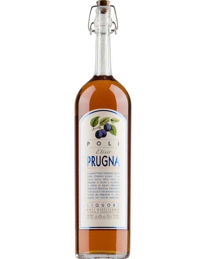 Poli Elisir Prugna er en blomme likør lavet ved at lade ren frisk blommesaft trække i alkohol. Resultatet er en frugtig likør med intense noter af blomme, abrikos, mandel og tørret frugt. Smagen er sødmefuld men flot balanceret. Likøren er perfekt sammen med nøddekager, blommer, tørret frugt og til makroner og småkager. Server den gerne let afkølet ved 10-15 grader i tulipanformede glas.