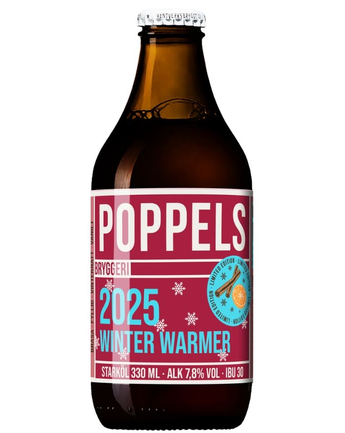 Denne årgang af Winter Warmer fra Poppels Bryggeri i Partille bygger på den engelske tradition med stærkere vinterøl, skabt til at varme kroppen og sjælen i den kolde tid. Øllet er brygget med kornmalt, apelsin og kanel, og har en brunrød farve med tæt skum og en fyldig, maltpræget karakter.