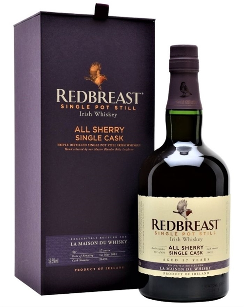 Forside » Whisky » Whisky Destillerier » Redbreast Whiskey Redbreast 17 år LMDW Single Cask Irish Pure Potstill Whiskey Irsk 59,5% Er du nysgerrig på mere? Vi elsker god spiritus – og vi deler gerne ud af vores viden. Læs vores blogs, lyt til podcasten eller bliv klogere på smag, fadlagring og traditioner. 👉 Gå til bloggen og bliv inspireret Pris ved køb af 1 Stk,4.999,00 DKK Antal Tilføj til din ønskeliste Optjen bonuskroner: - Læs mere Status: På lager Varenr: 22227865422236-996 Har du prøvet dette produkt? Giv en rating mellem 1-5 stjerner Bedømmelse for Redbreast 17 år LMDW Single Cask Irish Pure Potstill Whiskey Irsk 59,5%Produktet er endnu ikke bedømt ← Start her Køb sammen med denne vare Glencairn Whiskyglas i hvid kasse - 6 stk. DKK279,00 Info Beskrivelse Fragt og retur Kontakt Anmeldelser Destilleri: Redbreast All Sherry Single Cask LMDW Alder: 17 år Distilled: 2001 Type: Pure Pot Still Irish whiskey Alc. styrke: 59,5% 70 cl. Andet: Kun 636 flasker til hele verden - Non chillfiltered. All Sherry Single Cask Redbreast 17 Year Old 70cl / 59.5% Single Pot Still Irish Whiskey Distillery Bottling Redbreast All Sherry Single Cask LMDW - Only 636 bottles from a 2001 sherrycask. Specially for La Maison du Whisky Distillery: Midleton (1975-) Bottler: Distillery Bottling Bottling serie: All Sherry - Single Cask Vintage: 2001 Stated Age: 17 years old Casktype: Sherry Butt Casknumber: 26494 Number of bottles: 636 Strength: 59.5 % Vol. Size: 700 ml Barcode: 5011007017828 Bottled for: La Maison Du Whisky Postnord Fri fragt ved køb over 899,- kr. 0-5 kilo = fra 39,- kr. 5-10 kilo = 99,- kr. 10-20 kilo = 149,- kr.Læs om vores retur her 0 anmeldelser Produktet er endnu ikke anmeldt. Klik her for at skrive en anmeldelse. Varenr: 22227865422236-996 Er du nysgerrig på mere? Vi elsker god spiritus – og vi deler gerne ud af vores viden. Læs vores blogs, lyt til podcasten eller bliv klogere på smag, fadlagring og traditioner. 👉 Gå til bloggen og bliv inspireret