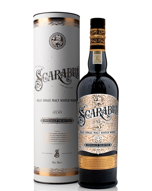 Scarabus Whisky er frisk, ung whisky med smagen af vanilje, peat og havsalt. Eftersmagen er varmende og lækker med noter af læder og vanilje. En skøn dram, hvis du for alvor har en kærlighed til Islaymalt. Måske kan du smage hvor den er produceret?