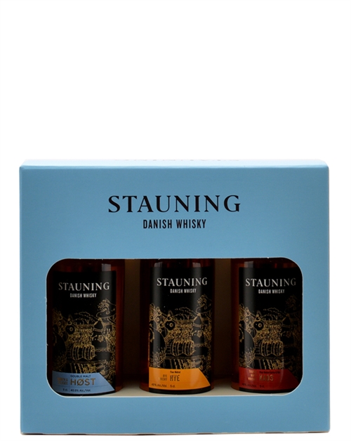 Stauning Miniature Høst Rye Kaos Gavesæt Dansk Whisky 3x5 cl