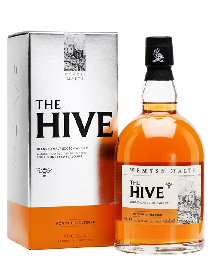 Wemyss Malts - The Hive For mange er begrebet ”blending” i Whisky industrien et ”fy-ord”,men familien Wemyss’ vin-baggrund gør, at de ser helt anderledes på dette. Deres samarbejde med Charlie Maclean for at blende "signature" malts er blevet en stor succes og produkterne får priser i lange baner: The Hive er endnu en "handcrafted" Malt Whisky fra WEMYSS familien. WEMYSS betyder grotter på skotsk og fremmaner Fife regionens klippekyster. Fife er sædet for Wemyss Castle, hvorfra familien har skuet ud over havet i over 800 år. The Hive er resultatet af familiens passion for Whisky, hvor hver enkelt fad bliver strengt udvalgt og blended for at skabe en Malt Whisky, der kendetegnes ved sine honingsøde smagsvarianter.