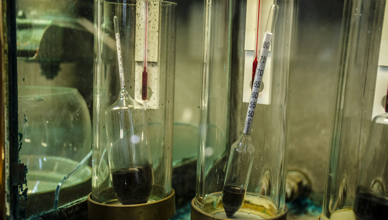 Måleapparater i "spirit safen" forsyner destillatøren med to vigtige værdiger:
