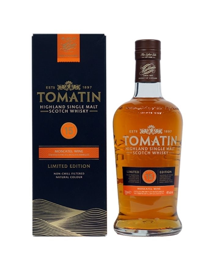 Tomatin Moscatel Wine Cask er en 15-års limited edition single highland malt whisky, som blev destilleret i 2003. Whiskyen har lagret de første 10 år i ex bourbon fade og efterfølgende de sidste 5 år i Moscatel vinfade. Denne lagring har skabt en varm smag og duft af ristede citruskrydderier og soltørrede frugter, som afrundes med en dejlig cremet og sød finish.