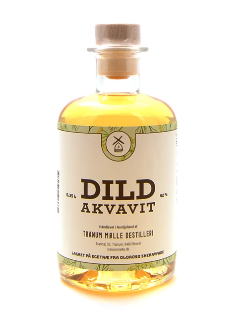 En på mange måder klassisk dild-akvavit, og så alligevel overhovedet ikke. Denne snaps fra Tranum Mølle Destilleri, har nemlig lagret på egetræsfade, der tidligere har indeholdt sherrytypen Oloroso. Det giver en fin afrunding af smagen, og tilfører en behagelig mængde sødme, uden at overtage fuldstændigt. En klassiker til det danske frokostbord. Smag forskellen og prøv Tranum Mølle Dild Akvavit 35 cl