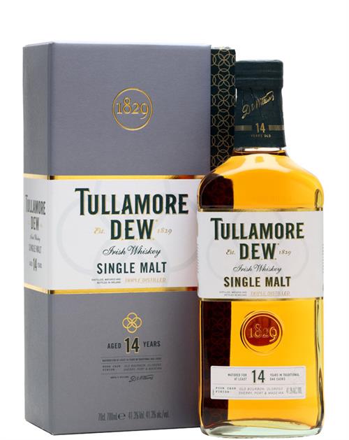 Forside » Whisky » Whisky Destillerier » Tullamore Dew Whiskey Tullamore Dew 14 år Triple Distilled Single Malt Irish Whiskey 70 cl 41,3% Er du nysgerrig på mere? Vi elsker god spiritus – og vi deler gerne ud af vores viden. Læs vores blogs, lyt til podcasten eller bliv klogere på smag, fadlagring og traditioner. 👉 Gå til bloggen og bliv inspireret Pris ved køb af 1 Stk,499,00 DKK Antal Tilføj til din ønskeliste Optjen bonuskroner: - Læs mere Status: På lager Varenr: 22227865463-8151 Har du prøvet dette produkt? Giv en rating mellem 1-5 stjerner Bedømmelse for Tullamore Dew 14 år Triple Distilled Single Malt Irish Whiskey 70 cl 41,3%Bedømmelse: 3.5 ud af 5 baseret på 3 stemmer ← Start her Køb sammen med denne vare Glencairn Whiskyglas i hvid kasse - 6 stk. DKK279,00 Info Beskrivelse Fragt og retur Kontakt Anmeldelser Destilleri: Tullamore Dew Alder: 14 år Type: Single Malt Irish Whiskey Fad nummer/type: Ex-Bourbon, Oloroso Sherry, Port Wine, & Madeira Alc. styrke: 41,3 % 70 cl. Tullamore Dew / 14 year 70cl / 41,3% Single Malt Irish Whiskey Distillery Bottling Postnord Fri fragt ved køb over 899,- kr. 0-5 kilo = fra 39,- kr. 5-10 kilo = 99,- kr. 10-20 kilo = 149,- kr.Læs om vores retur her 0 anmeldelser Produktet er endnu ikke anmeldt. Klik her for at skrive en anmeldelse. Varenr: 22227865463-8151 Er du nysgerrig på mere? Vi elsker god spiritus – og vi deler gerne ud af vores viden. Læs vores blogs, lyt til podcasten eller bliv klogere på smag, fadlagring og traditioner. 👉 Gå til bloggen og bliv inspireret