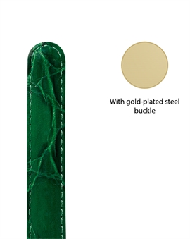 En grøn rem til armbåndsur fra Underberg, med forgyldt stålspænde til damer, designet af Christina Jewelry and Watches.