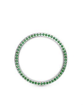 Underberg topring Med ridsefrit safirglas og 60 flotte grønne CZ sten. En smuk topring til armbåndsur fra Underberg, i stål med grønne sten, designet af Christina Jewelry and Watches. Du kan nemt udskifte basis-topringen, som sidder på uret, og erstatte den med denne skønne topring.