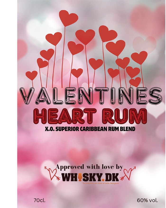 Valentines Heart Rum er skabt af rom fra en række af de bedste destillerier i Caribien. Den kommer direkte fra fadet, så der fuld smæk på smag og duft.