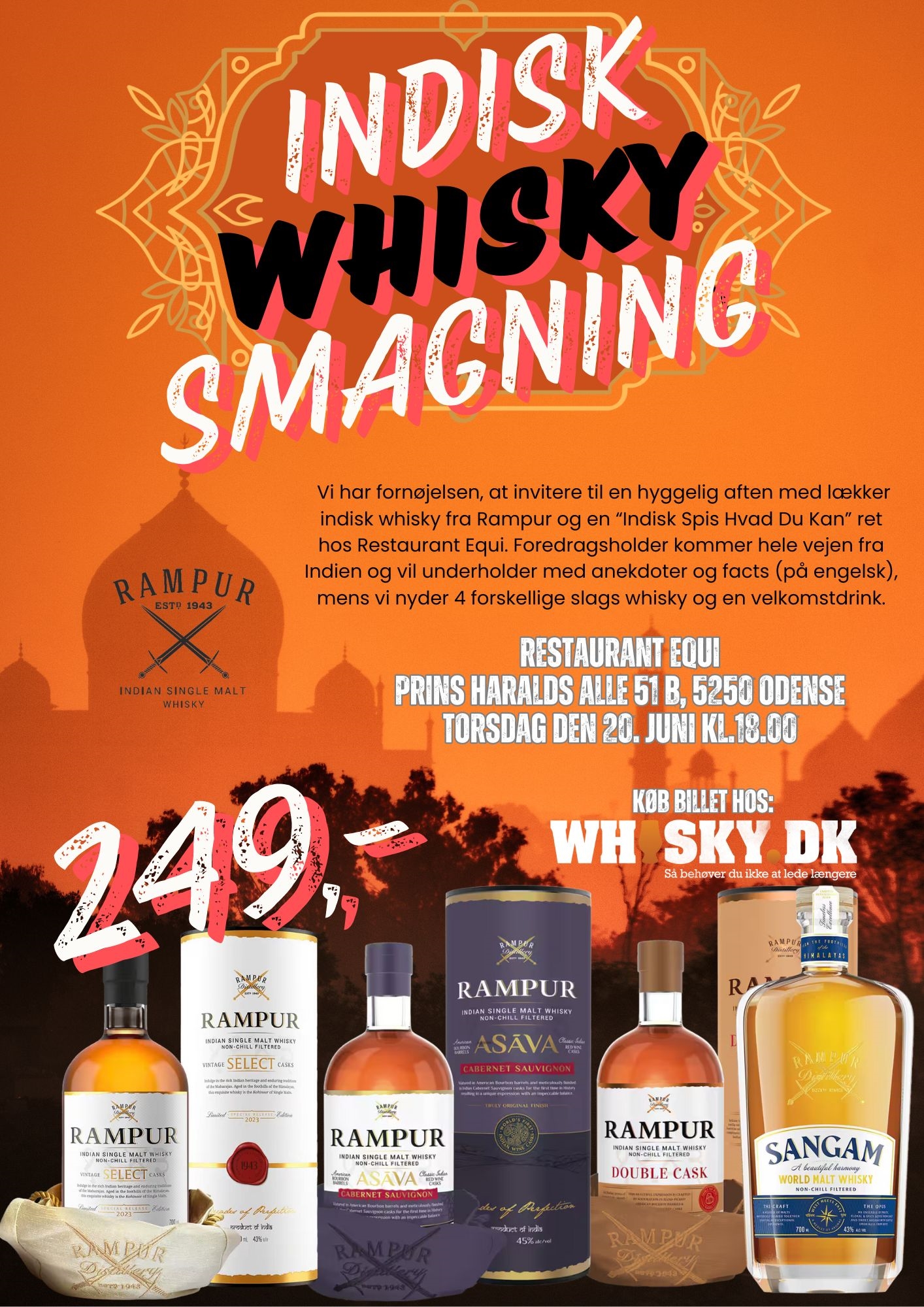 Eller deltag i Indisk Whisky Smagning den 20. juni 2024