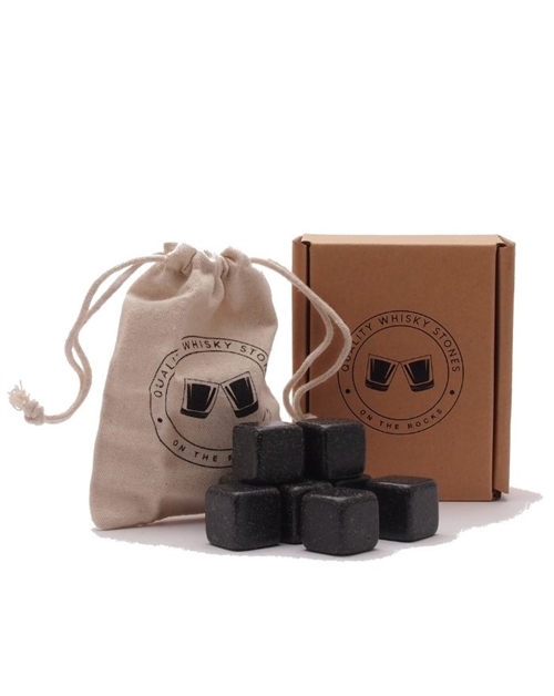 Pakken består af 9 whiskysten i mørk/sort og en stofpose til opbevaring i fryseren.
